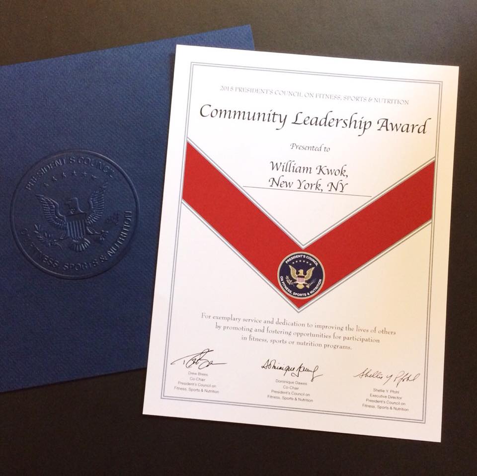 Community Leadership Award by the US President's Council on Sports, Fitness & Nutrition Award.